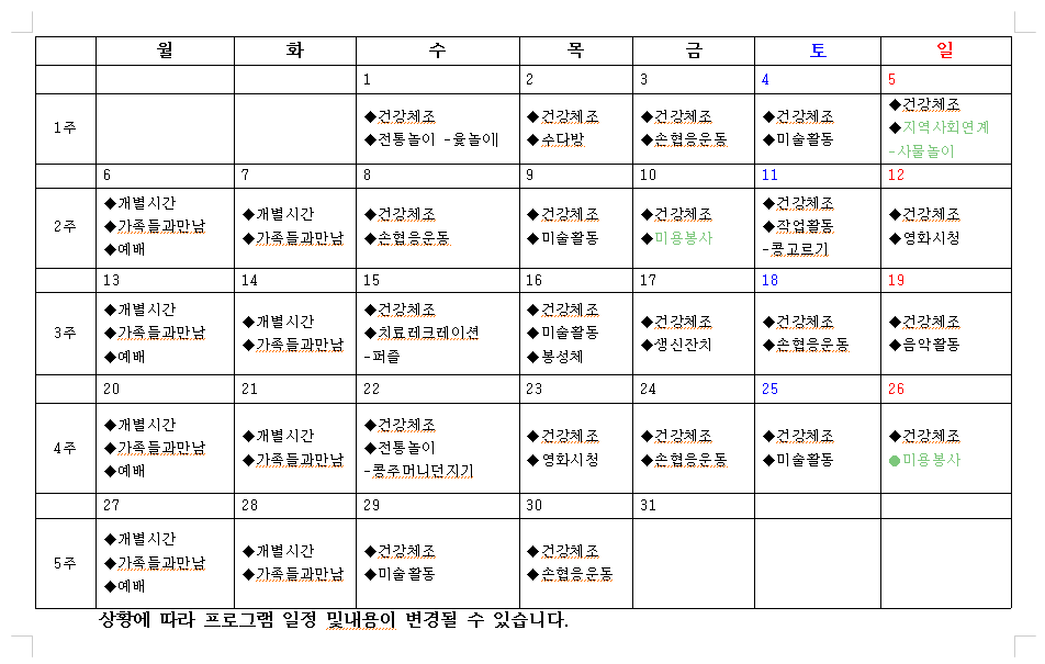 ¿ù°£ÀÏÁ¤Ç¥